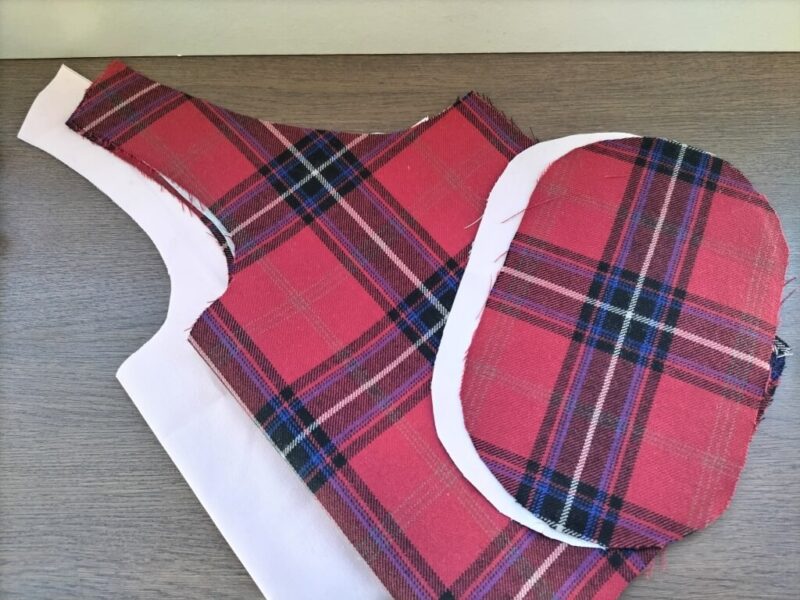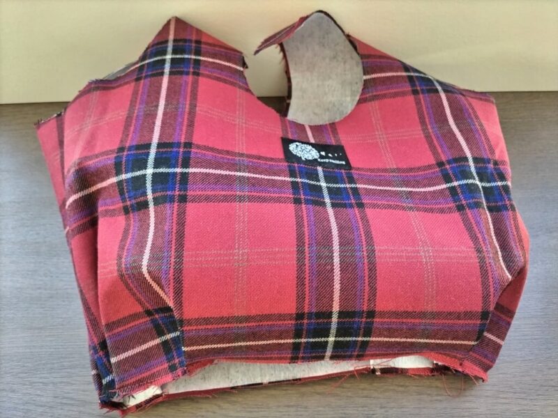 表に使うのは、赤地にチェックのウール生地。むふふ、かわいい。