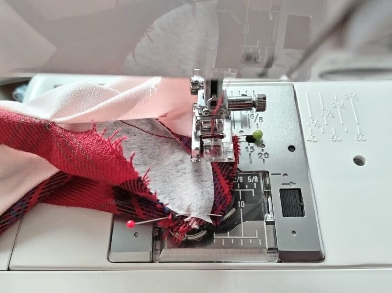 この表布と内布とを中表に合わせたら、バッグ口を縫っていきます。