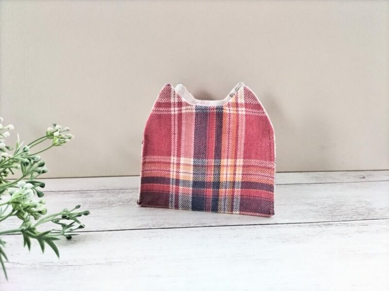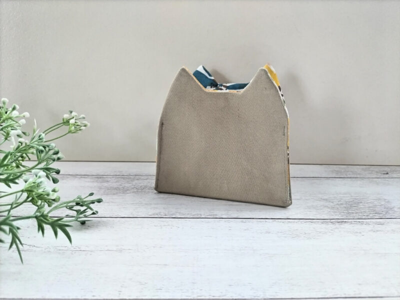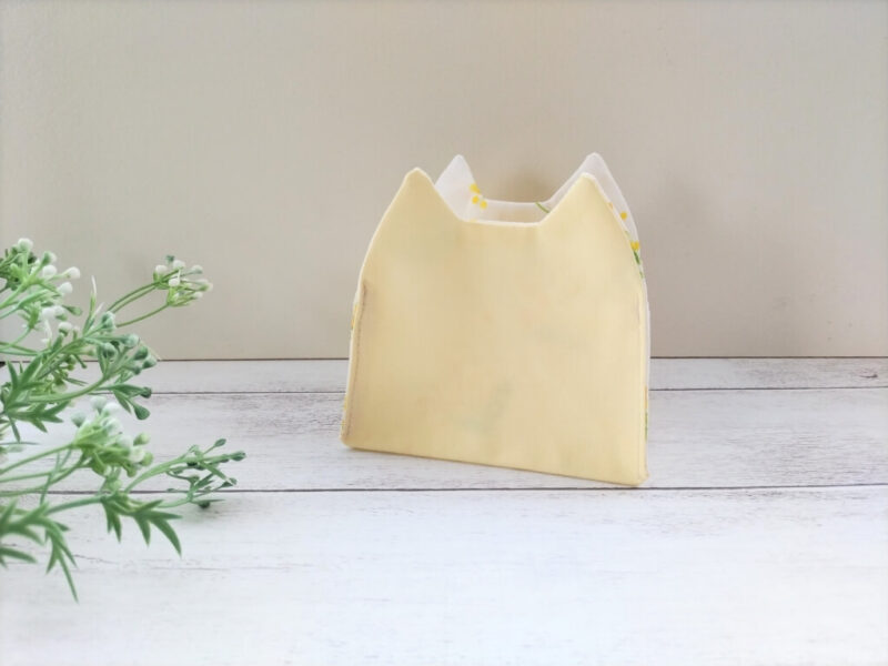 内側は、黄色ネコはミモザ柄、ピンクチェックは薄いピンクの花柄、オリーブは大柄の花柄です。