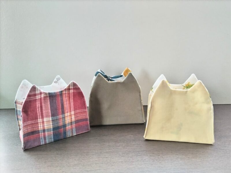 そして、こちらは最近お気に入りのネコ耳バスケット。3個作りました♪