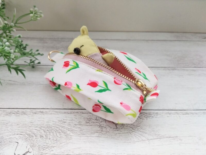 まずは新作、真ん中ファスナーのポーチ。ちっちゃいけど、ぶら下げたりもできてかわいいのだ。