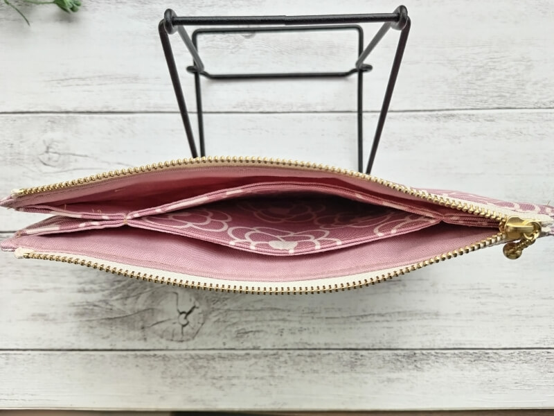 内側はどれも真ん中にカードにぴったりな小さめポケット、そして両サイドには通帳などが入れられる。
