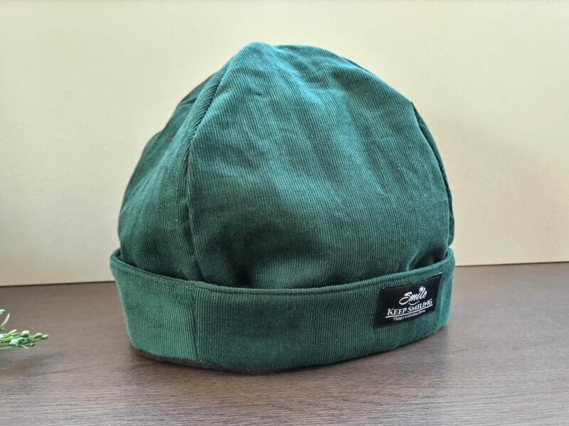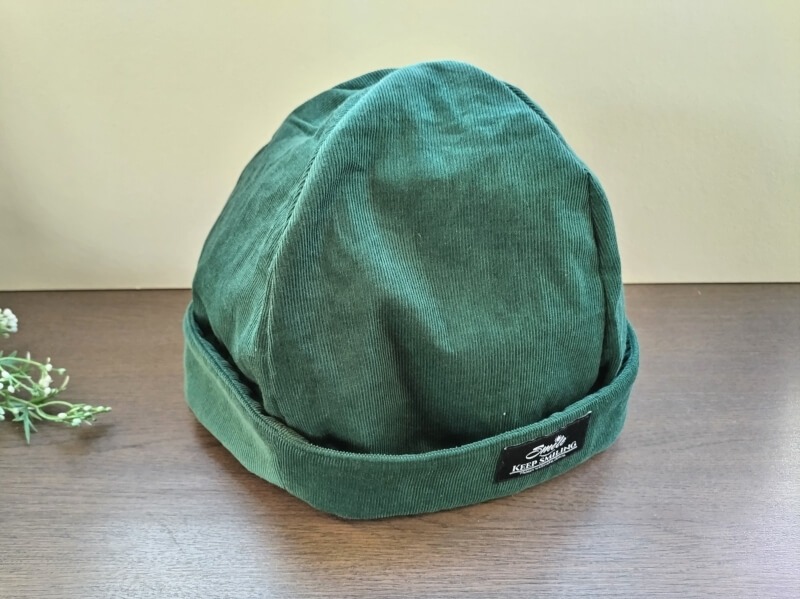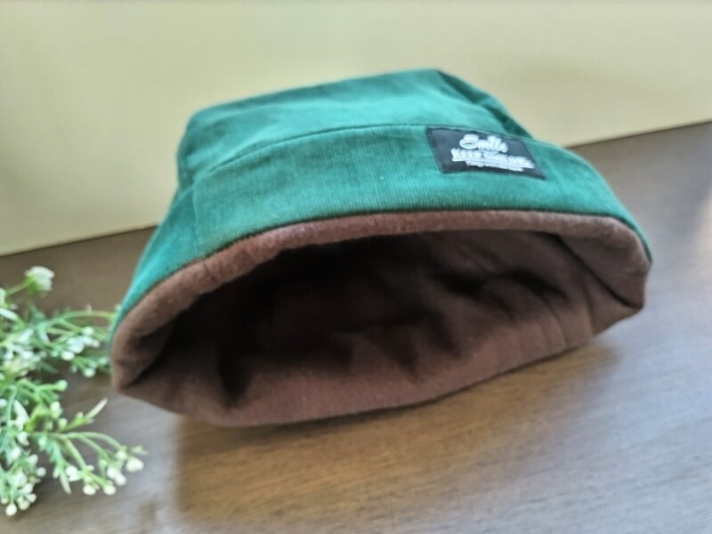 用意したのは、緑色のコーデュロイ。ちょっと深みのある佳き色です。そして内側には前と同じ茶色のフリースを。