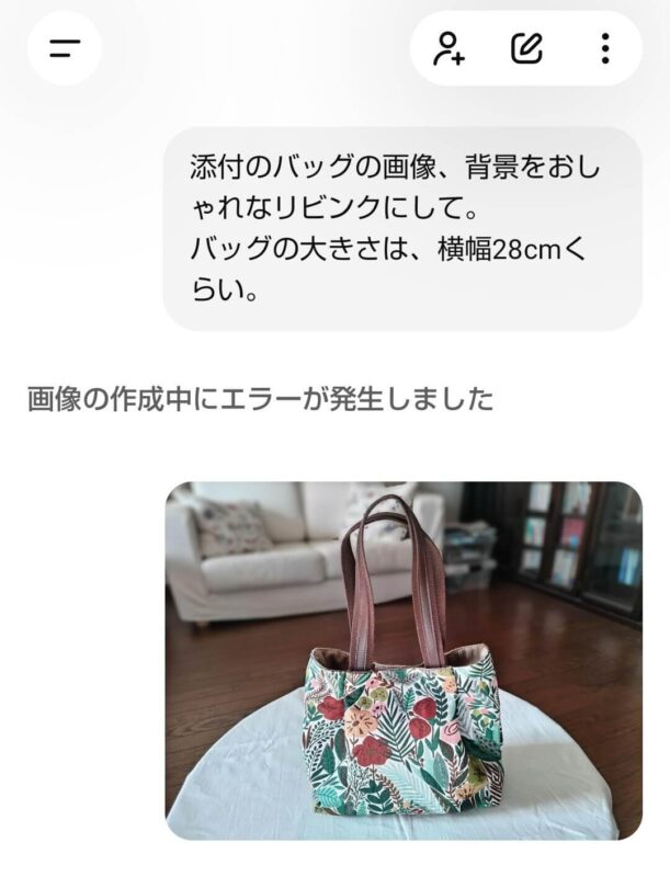 背景を変えるだけなら、前みたいに作品が伸びたり柄が変わってしまったりはしないんじゃないかな。それに変に加工された時からもう半年近く経ってるから、チャッピーさんもさらに進化してるだろうし。