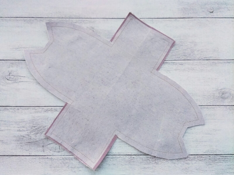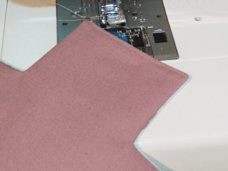 カーブ部分や直角のところに切り込みを入れて、ひっくり返した時に綺麗になるようにしておきます。そして表に返して、アイロンで落ち着かせます。