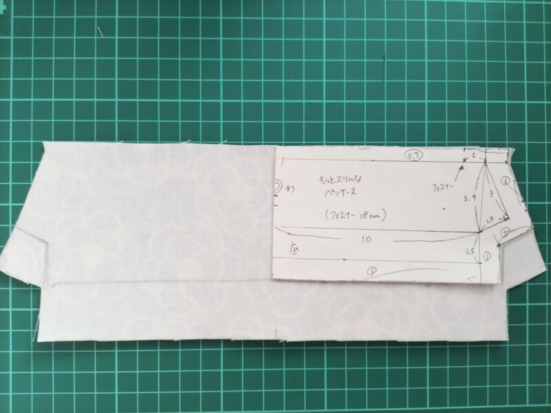 使った型紙をチェックしてみると、「スリムなペンケース」と書いてありました。下の「もっとスリムなペンケース」の型紙で作りたかったのに。