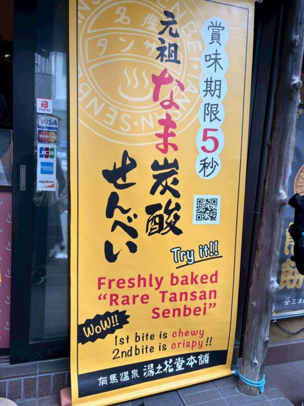 その場で焼き立ての炭酸せんべいを買う。できたては熱々でフニャフニャしてるんだけど、5秒くらいするとパリッと固くなってくる。