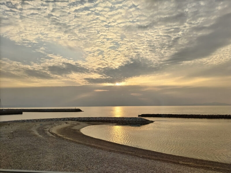 ここの見どころは、瀬戸内海に沈む夕日。ちょっと雲がかかってたけど、綺麗だった。