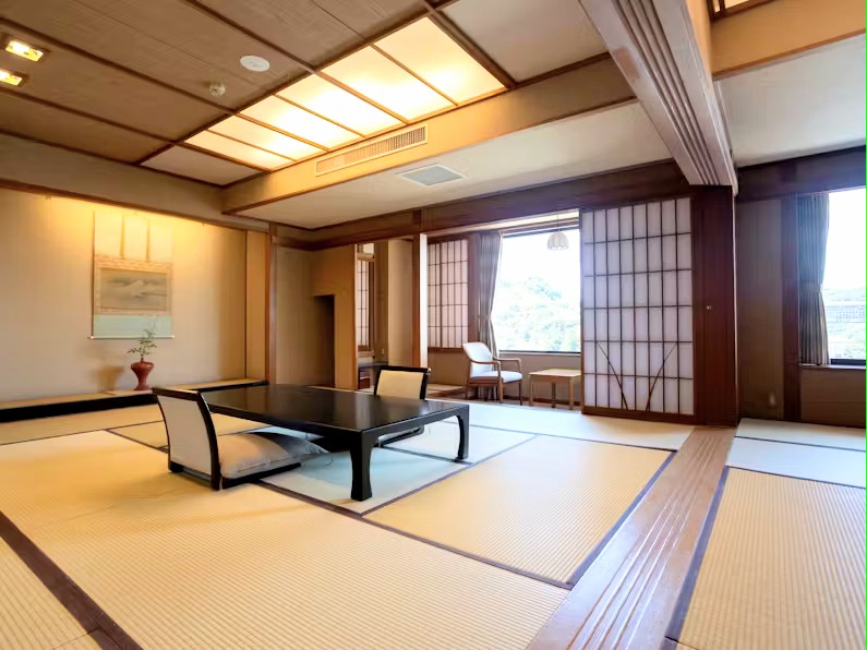 こちら、両親が泊まった部屋(画像はお借りしました)。洋室が楽とのことで、この部屋に。景色もいいし、部屋には銀泉温泉付き。