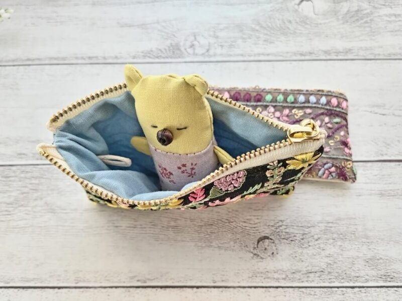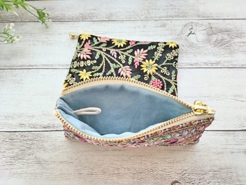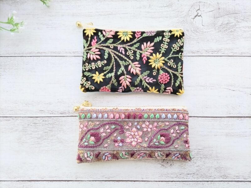 ずいぶん華やかなインド刺繍を生かしたポーチなんですね。
