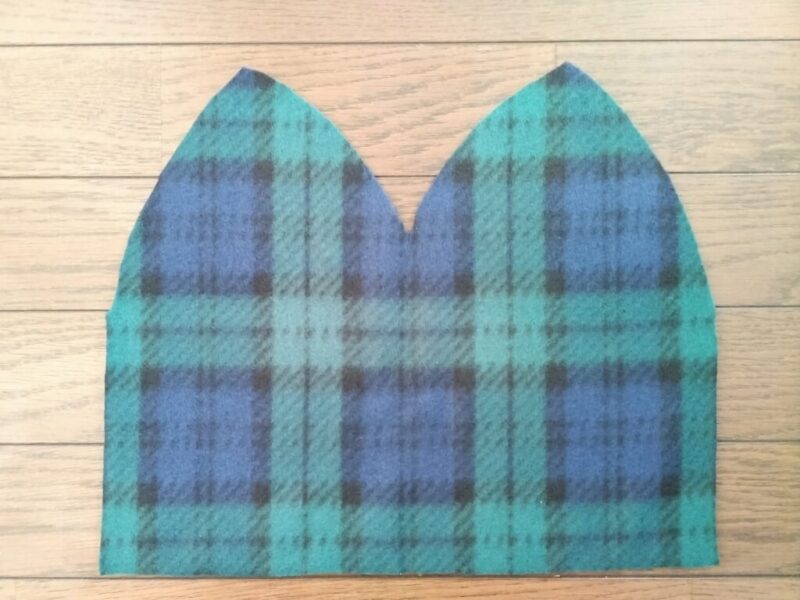 同じ形のものが表2枚、裏2枚できる。それぞれ、谷になってるところをカーブをつけて縫い合わせます。
