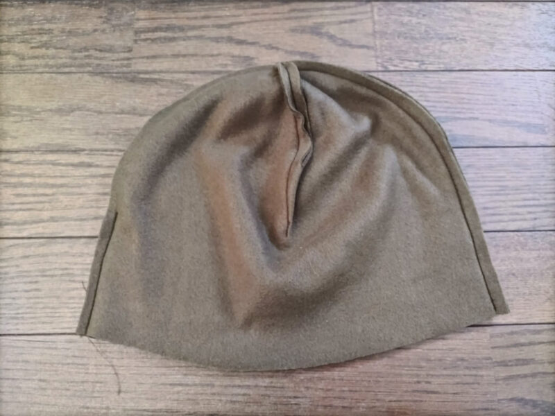 この2つの帽子を中表に合わせ、被り口のところでグルリと一周縫い合わせます。