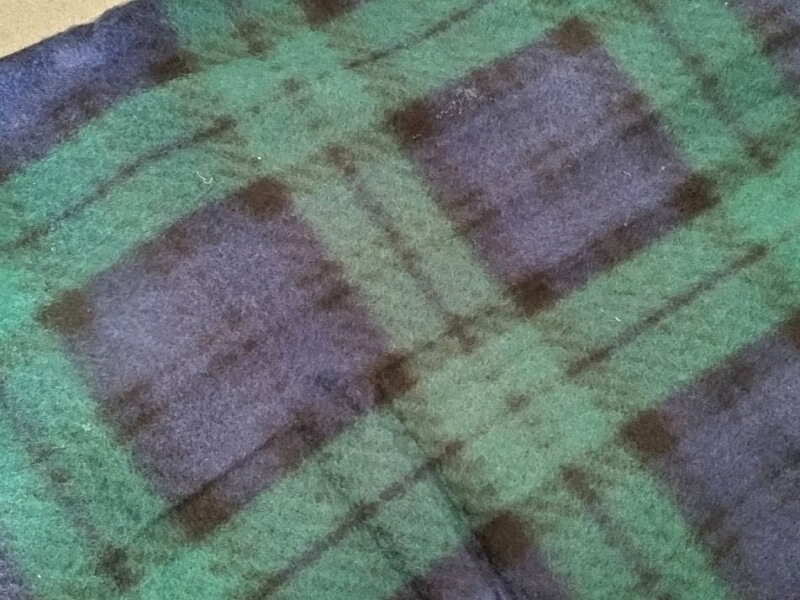 いつもの如く、突っ走り系でせっかちの私は、青と緑のチェック柄フリースを見つけたので、早速購入して作り始めました。