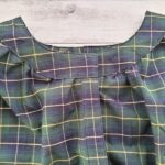 表側は紺とグリーンのチェック柄。内側はブラウンの無地です。ブラウンは前に先輩さん達向けで使った生地ね。リバーシブルで使える。